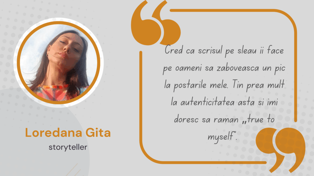 “Oamenii nu urmaresc pe cineva in online doar pentru ca posteaza frumos sau are poze reusite. Nu. Oamenii cauta sens, cauta emotie, cauta pe cineva care le vorbeste pe limba lor.